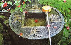 この教え「吾(われ)唯(ただ)足るを知る」を意匠として表したものを、京・龍安寺の茶室蔵六庵前にある徳川光圀寄進の「蹲/つくばい」に見ることができる。