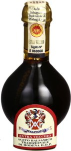 昔ながらの製法で作られて、「モデナ・バルサミコ協会/*DOPが認定したバルサミコ」(通称トラディツィオナーレ)には証紙が貼られ、どの製造元のものでも**ジウジアーロがデザインしたユニークな形の同じビンに入れられる。