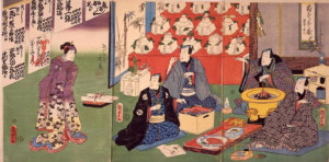 「楽屋正月の図」豊国 画/早稲田大学演劇博物館 蔵