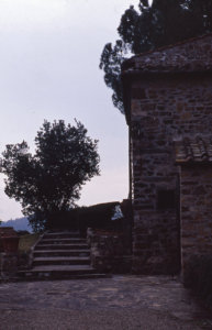 ベランダの下には、なだらかな丘陵地の糸杉に囲まれてオリーブが点々と植えられ、そのずっと下の方には葡萄畑が広がっていた。